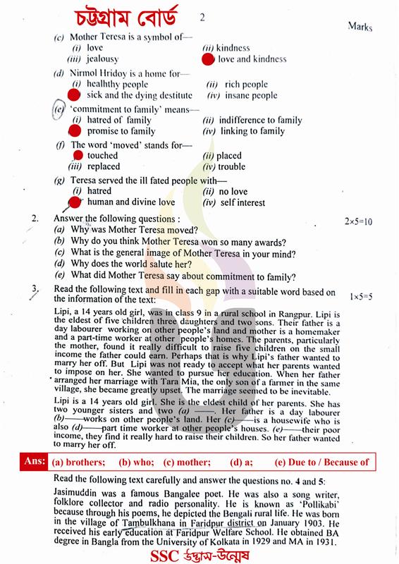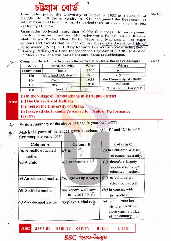 চট্টগ্রাম বোর্ড এসএসসি ইংরেজি ১ম পত্র প্রশ্ন সমাধান ২০২৫