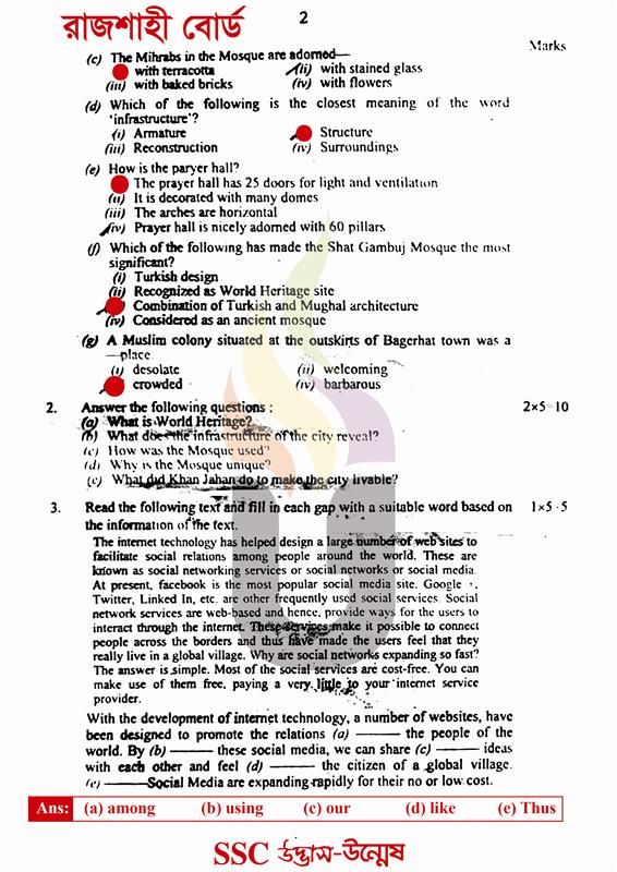 রাজশাহী বোর্ড এসএসসি ইংরেজি ১ম পত্র প্রশ্ন সমাধান ২০২৫