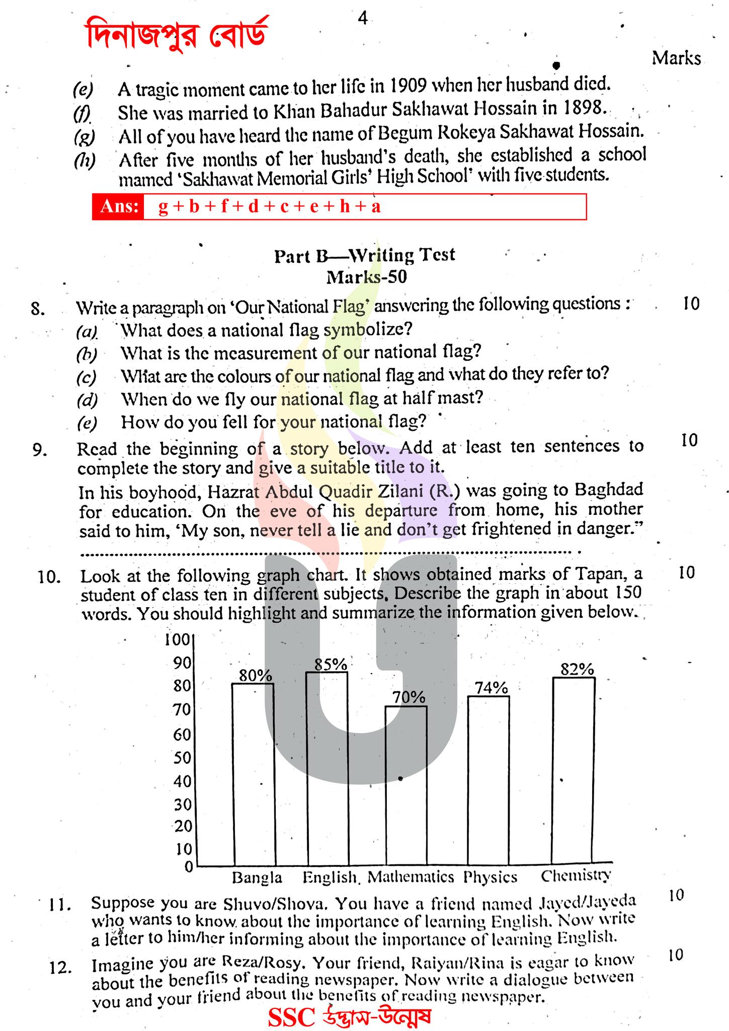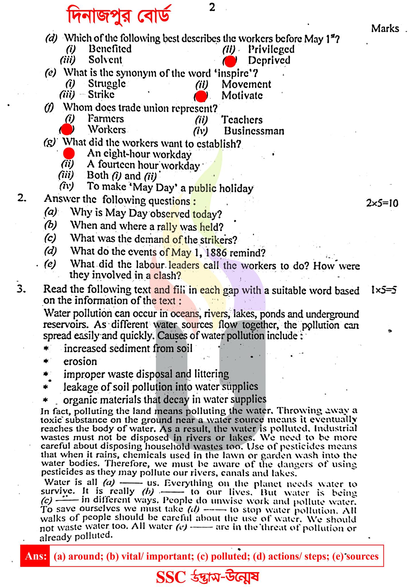 দিনাজপুর বোর্ড এসএসসি ইংরেজি ১ম পত্র প্রশ্ন সমাধান ২০২৫