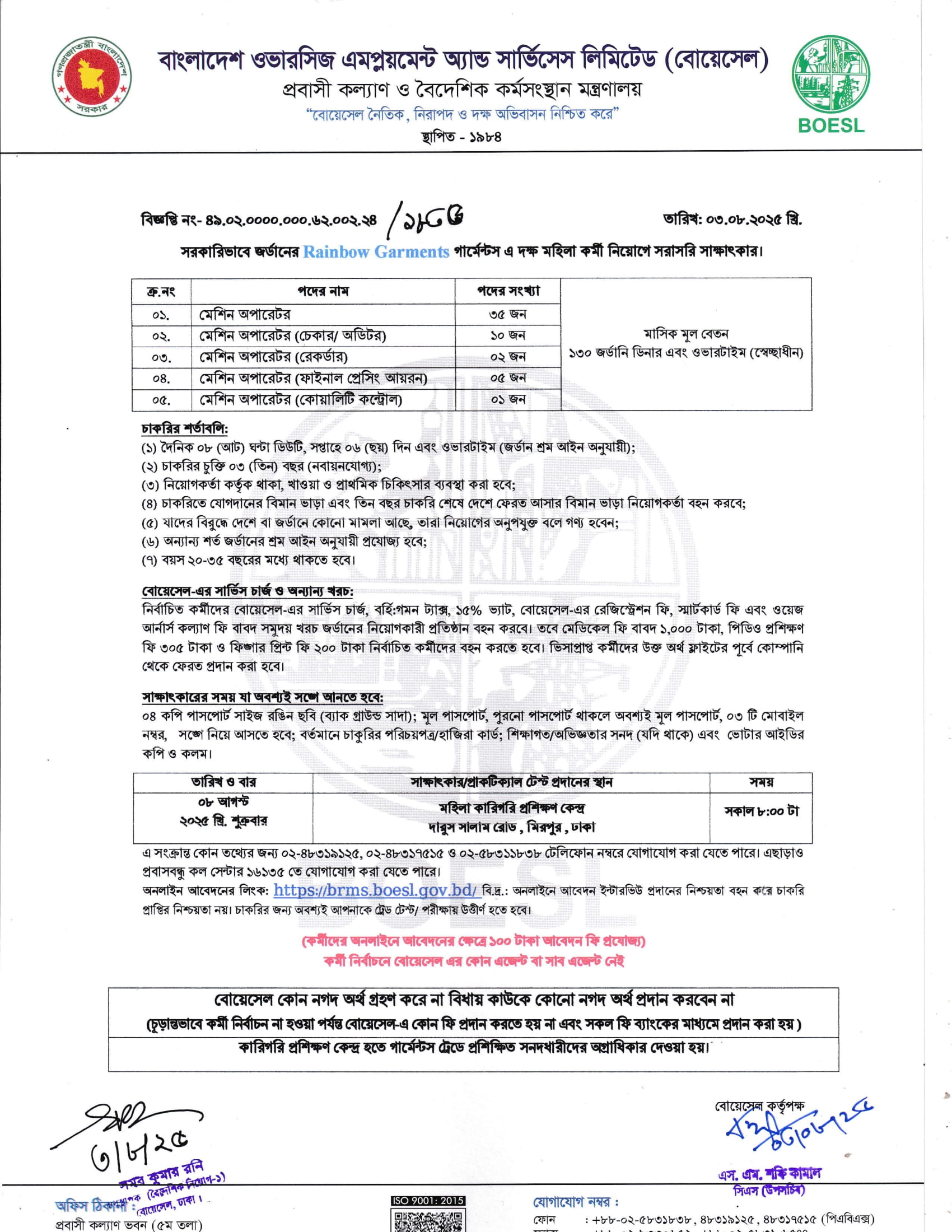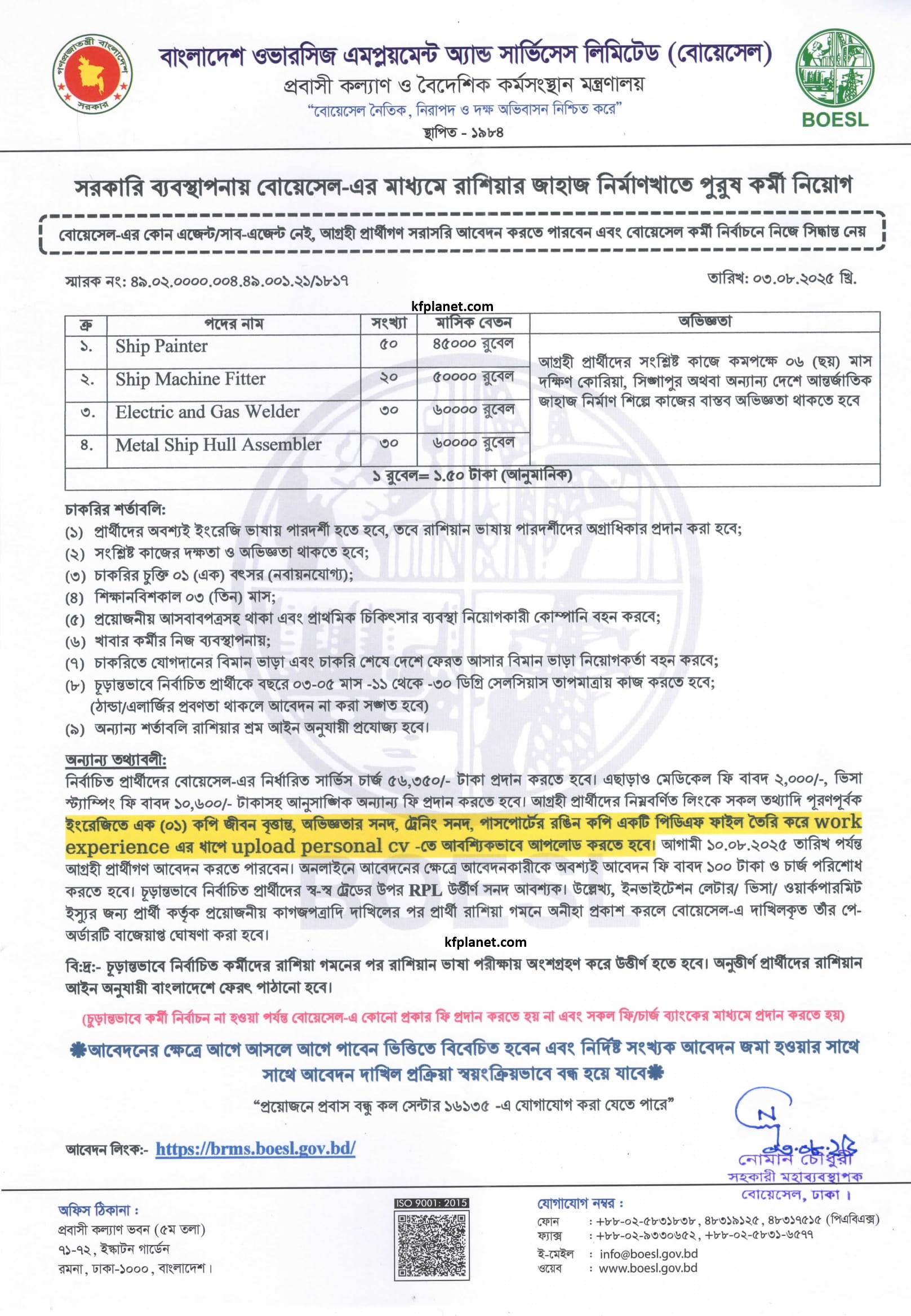 | Job Circular Title | Bangladesh Overseas Employment and Services Limited Job Circular 2025 |