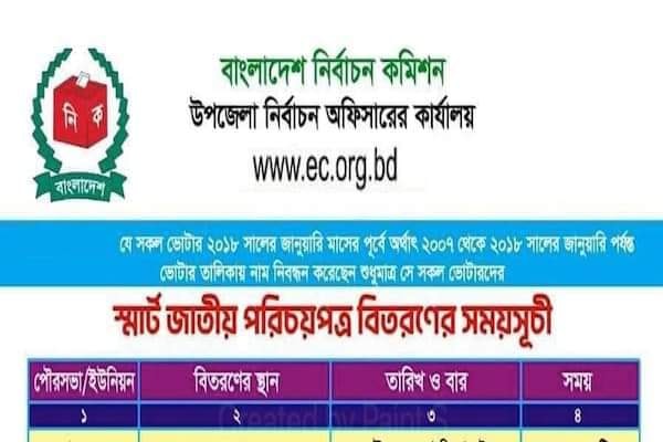 NID Smart Card Distribution Schedule | স্মার্ট কার্ড বিতরণের সময়সূচী