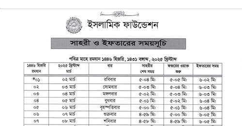 Ramadan Sehri and Iftar Time 2025 has been published by the authority. Sehri and Iftar Time 2025 is good news for Muslims in Bangladesh. All information related to Bangladesh Ramadan Sehri and Iftar Time 2025 is available below. The Islamic Foundation is a government organization in Bangladesh. The final declaration of the Islamic Foundation Sehri and Iftar Time 2025 has …