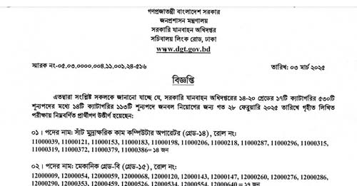 Department of Government Transport (DGT) Exam Result 2025 has been published. DGT Exam Result 2025 has been published by the authority. DGT Written Exam Result 2025 is good news for job seekers in Bangladesh. All information on the Department of Government Transport (DGT) Exam Result Notice 2025 is available below. The Department of Government Transport (DGT) is a Government Organization …