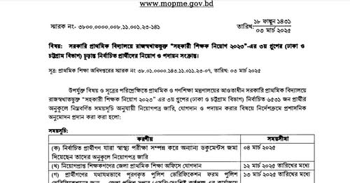 Read More »Primary Assistant Teacher 3rd Phase Final Viva Result 2025