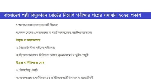 BREB Apprentice Lineman Exam Question Solution 2025 has been published. Bangladesh Rural Electrification Board (BREB) Apprentice Lineman Exam Question Solution 2025 has been solved by our educational team. PBS Apprentice Lineman Exam Question Solution 2025 is good news for job seekers in Bangladesh. All information on BREB Lineman MCQ Exam Question Solution 2025 is available below. Bangladesh Rural Electrification Board …