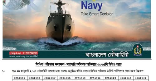 Bangladesh Navy Commissioned Officer 2025B DEO Batch Exam Result 2025