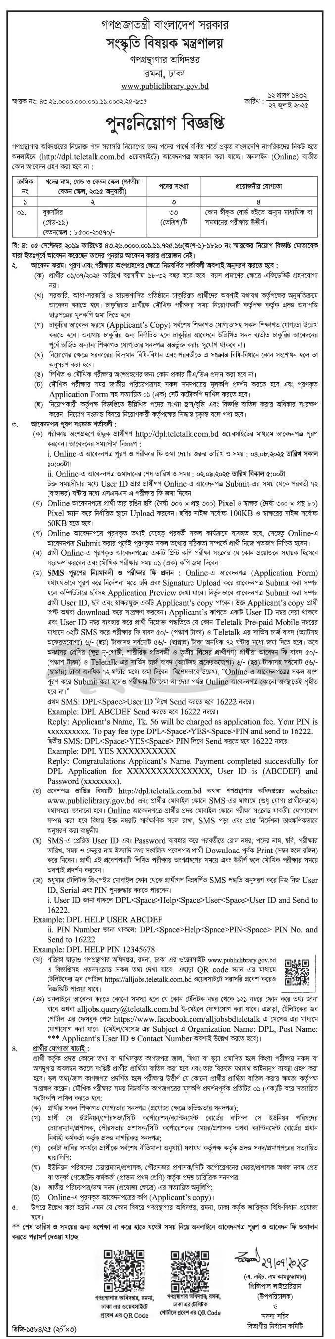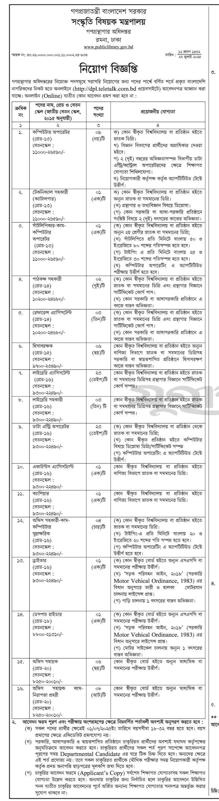 Department of Public Libraries Job Circular 2025 – www.publiclibrary.gov.bd