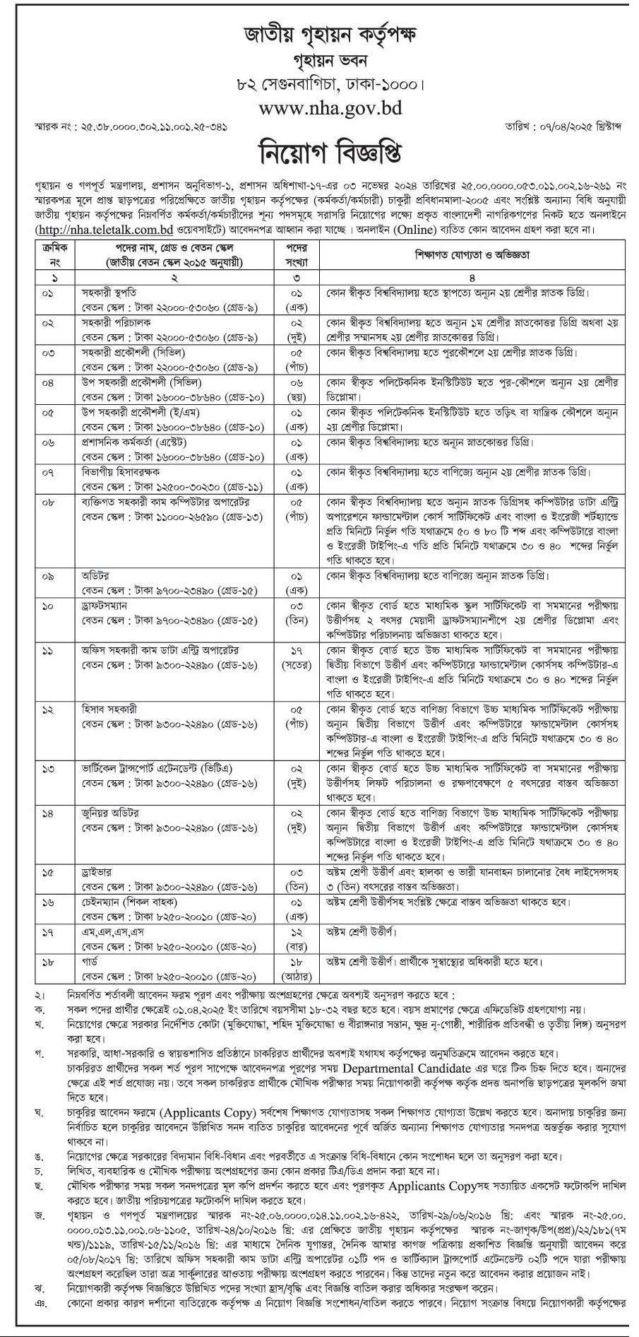 National housing authority NHA job circular 2025 has been published. It’s an attractive job circular. A few number of people will be hired. At this moment,maximum people want to join in government sector. In this case, National housing authority bring out a great chance to unemployed people.