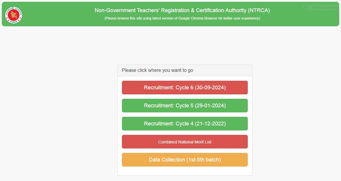 - First of all, candidates need to visit the official website www.ntrca.gov.bd or this link ngi.teletalk.com.bd/ntrca/app/.