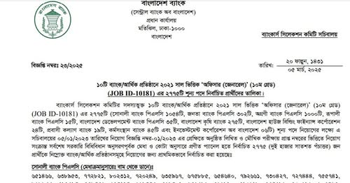 Combined 10 Bank Officer (General) Final Viva Result 2025 has been published. The authority has published 10 Combined Bank Officer Final Result 2025. Combined 10 Bank Officer (General) Final Result 2025 is good news for job seekers in Bangladesh. All Combined 10 Bank Officer (General) Viva Result 2025 information is available below. The Banker’s Selection Committee Secretariat (BSCS) is a …