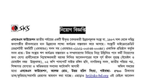 SKS Foundation Job Circular 2025 has been published. SKS Foundation Field Officer Job Circular 2025 has been published by the authority. SKS Foundation Field Assistant Job Circular 2025 is good news for job seekers. All information on the SKS Foundation Trainee Field Staff Job Circular 2025 is available below. The SKS Foundation is a private organization in Bangladesh. SKS Foundation …