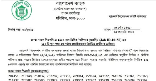 Janata Bank Officer (RC) 2nd Phase Panel Result 2025 has been published. Janata Bank Officer Rural Credit Panel Result 2025 has been published by the authority. Janata Bank Officer RC 2nd Panel Result 2025 is good news for job seekers in Bangladesh. All Janata Bank Officer Rural Credit Panel Result 2025 information is available below. The Banker’s Selection Committee Secretariat …