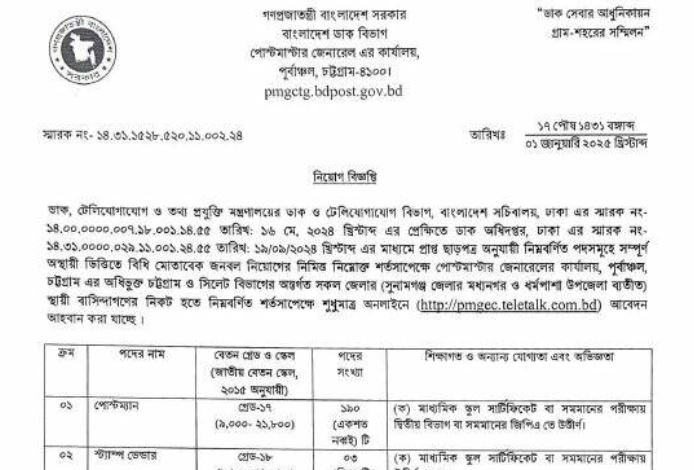 Read More »ডাক বিভাগে নিয়োগ বিজ্ঞপ্তি, নেবে ২২১ জন