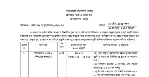 Read More »Additional District and Sessions Judge 1st Court Rangpur Job Circular 2025