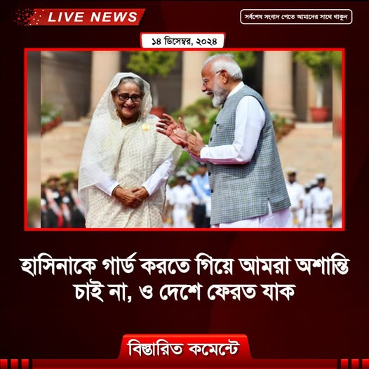 December 14, 2024 সারাদেশে ঐতিহাসিক ছাত্রজনতার অভ্যুত্থানে পতন হয় হাসিনার। এরপর থেকে পালিয়ে হাসিনা আশ্রয় নেন পার্শ্ববর্তী দেশ ভারতে। এতোদিন পর শেখ হাসিনাকে নিয়ে মুখ খুলতে শুরু করেছে ভারতীয় বাসিন্দারা। তারা বলছে, শেখ হাসিনাকে বাংলাদেশে ফেরত পাটিয়ে দেয়া হোক। আবার শেখ হাসিনাকে নিয়ে সেখানকার অনেকেই বলছেন ভিন্ন কথা। এই প্রতিবেদনে সেসব নিয়ে থাকছে আলোচনা, শেখ হাসিনার ব্যাপারে ভারতীয়দের …