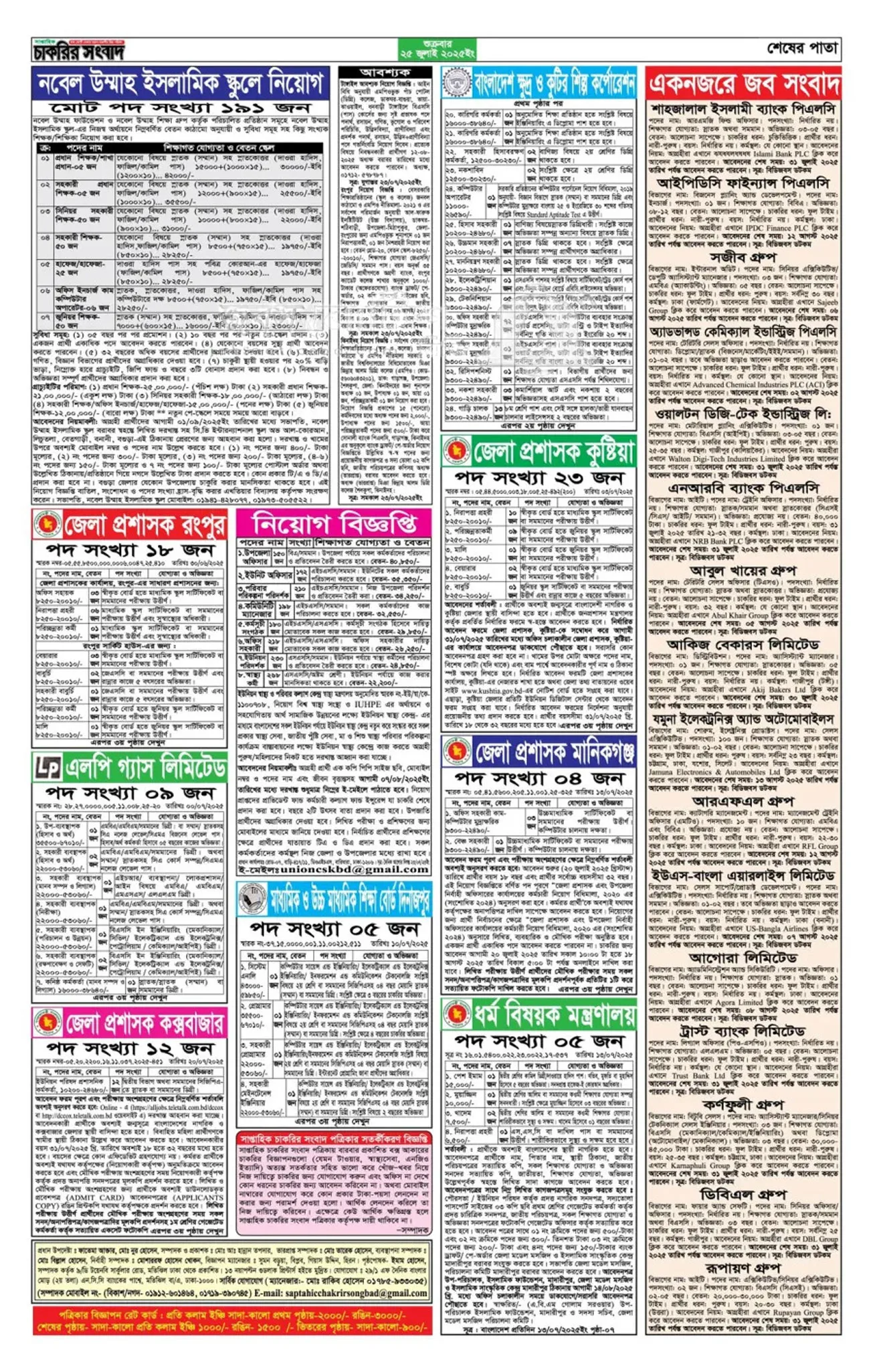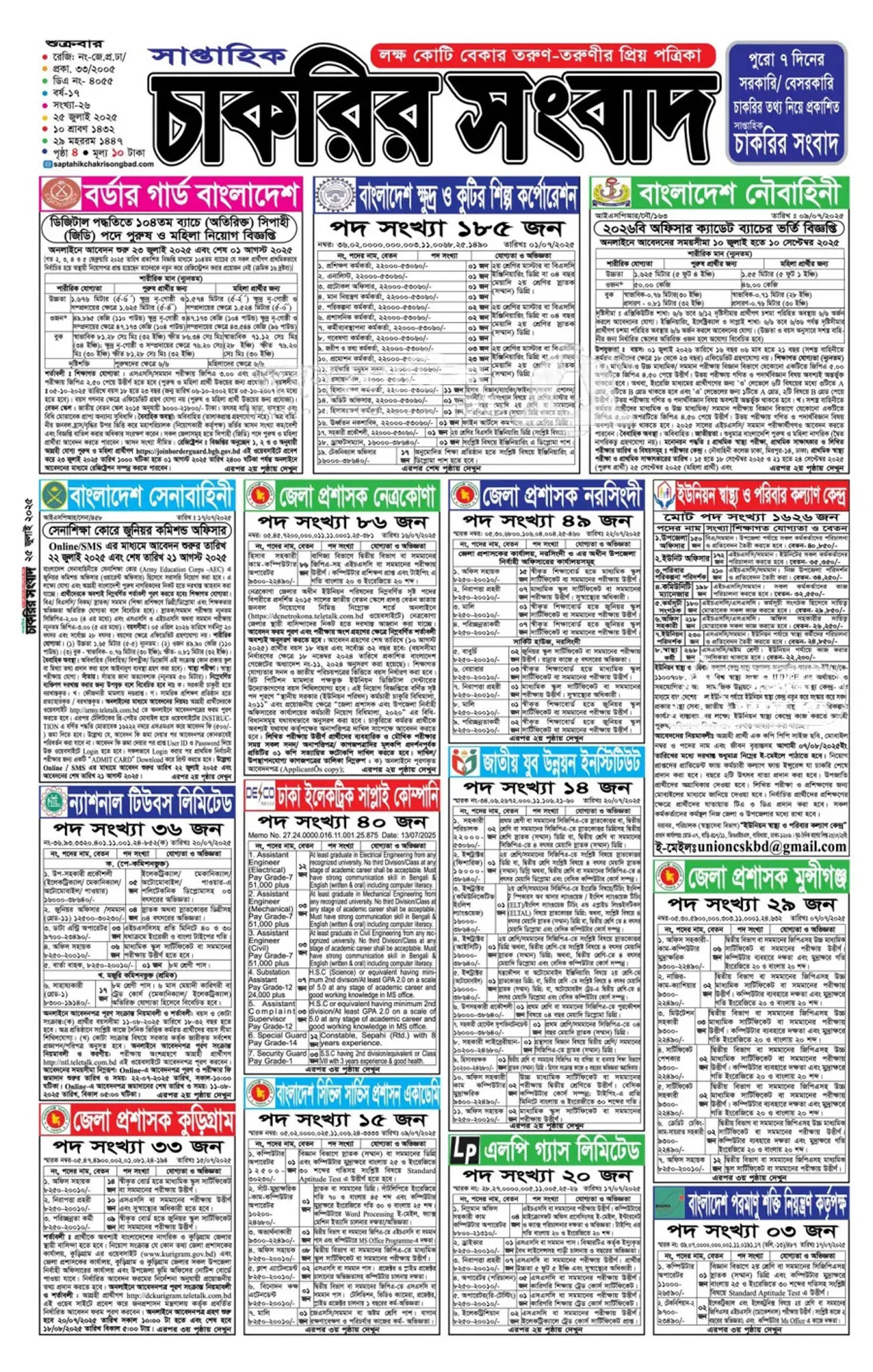 Saptahik Chakrir Songbad News Paper is the best jobs and education portal website of Bangladesh. Al kinds of job circular published in this news paper. Many job wanted candidates apply bangladeshi job company and department. So they always search on google or face book like weekly chakrir songbad newspaper 2025.