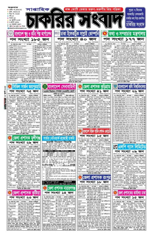 Saptahik Chakrir Khobor is not just a newspaper; it is a comprehensive job portal in print form. The 27 June 2025 edition lives up to this reputation, offering a diverse range of job opportunities spanning various sectors. From government jobs to private sector openings, the newspaper leaves no stone unturned when it comes to employment news. Job seekers can find information about vacancies in banking, education, healthcare, IT, and many other sectors, making it a one-stop destination for those on the lookout for employment.
