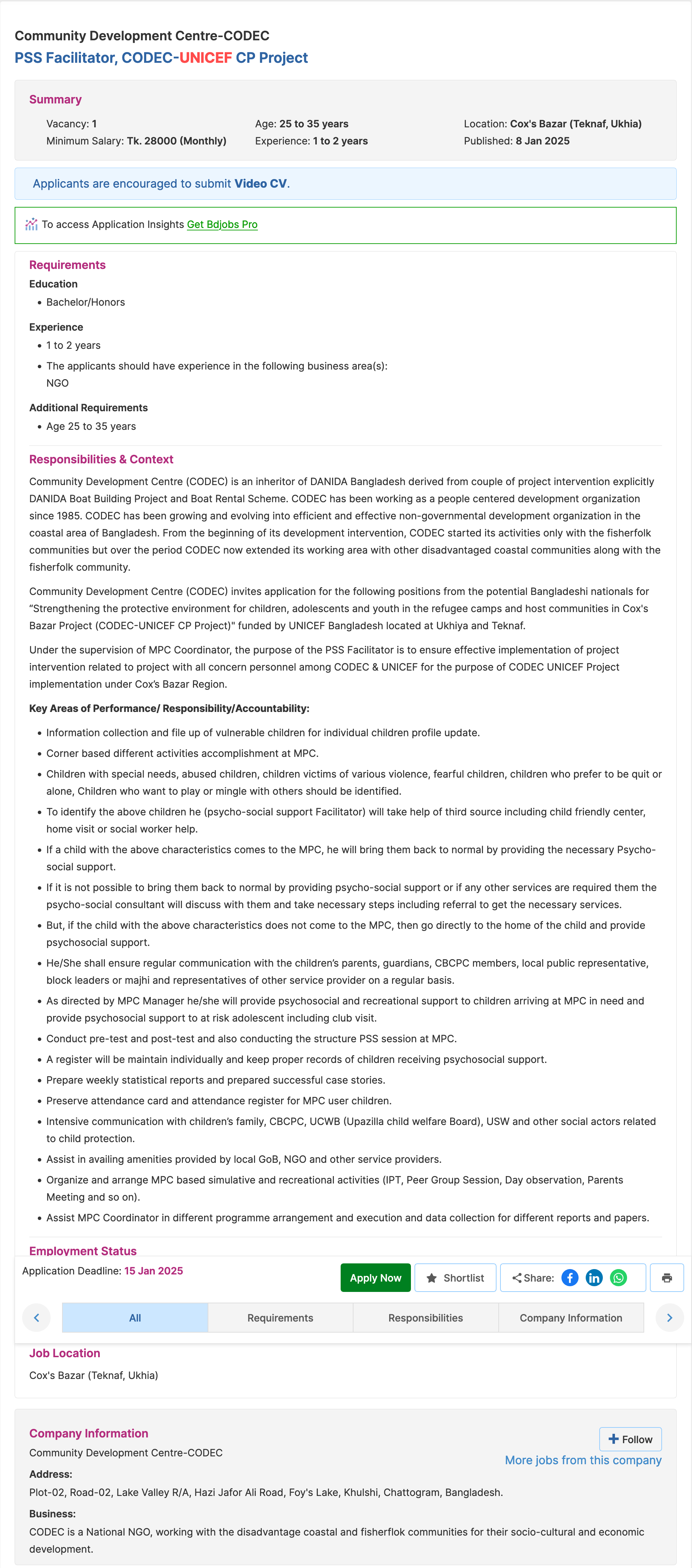 UNICEF Job Circular Summary |